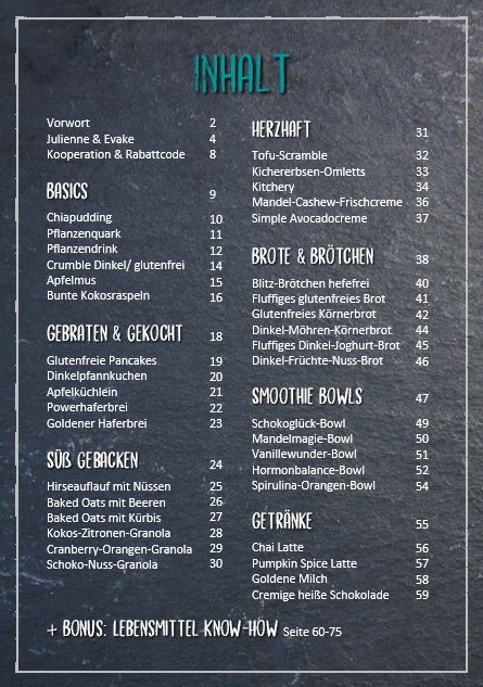 Die Evake Soulfood-Ebooks wurden geschrieben mit viel Hingabe und Leidenschaft zum Detail. Du erfährst in ihnen Hinweise zu den einzelnen Produkten und ihrer Verarbeitung, Tipps wie du deine Gesundheit verbessern kannst und welche Mikronährstoffe enthalten sind.