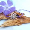 Handgeknüpftes Armband mit silbernem Verbindungsstück Blume des Lebens Minze.