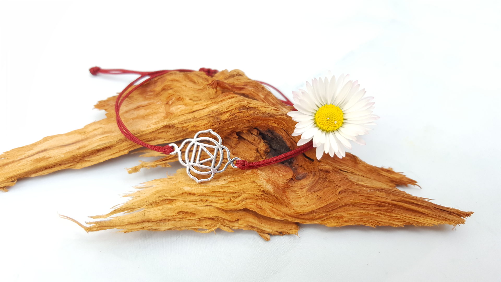 Handgeknüpftes Armband mit silbernem Verbindungsstück Chakra Muladhara/Wurzelchakra.