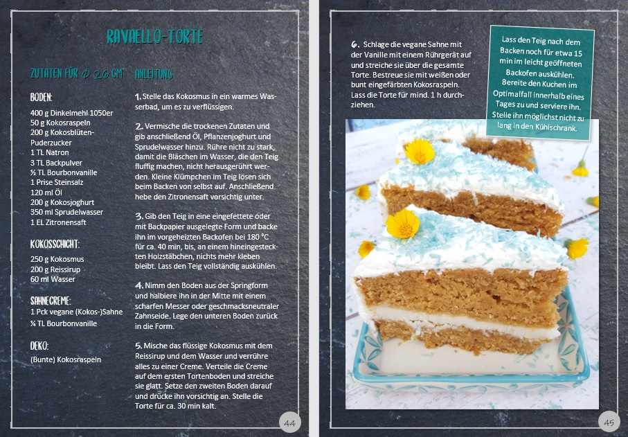 Dieses lecker-süße Kochbuch versorgt dich und deine Lieben mit 28 erfüllenden Rezepten für jeden Anlass von Zitronensoftkeks über Limette-Mohn-Kuchen bis Mango-Cremeschnitten. Natürlich backen und essen wir diese Köstlichkeiten meist nicht täglich, aber wenn wir es tun, sollten wir wunderbare Rezepte zur Hand haben, die gelingen und ihren tierischen „Verwandten“ in nichts nachstehen. Daher sind meine Rezepte nicht ausschließlich darauf ausgelegt „gesund“ zu sein, sondern auch darauf für wirklichen Genuss zu sorgen.
