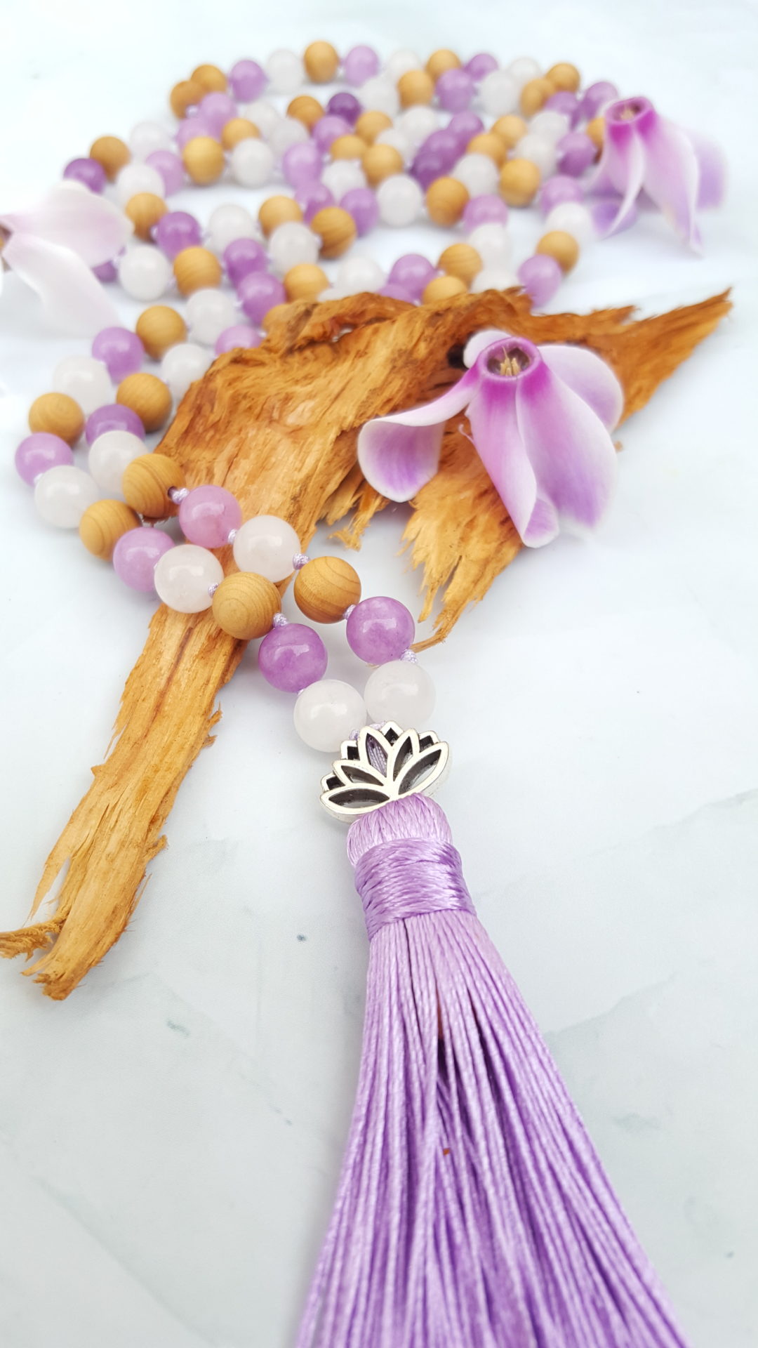 Weiße Jade, Fliederjade, Sandelholz – 8 mm
