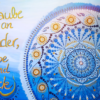 Postkarte 15 x 15 cm Motiv „Ganesha“ mit dem indischen Gott Ganesha, der Maus, seinen Bällchen und Lotusblume im Universum Die Rückseite ist frei – sie eignet sich zum Schreiben!