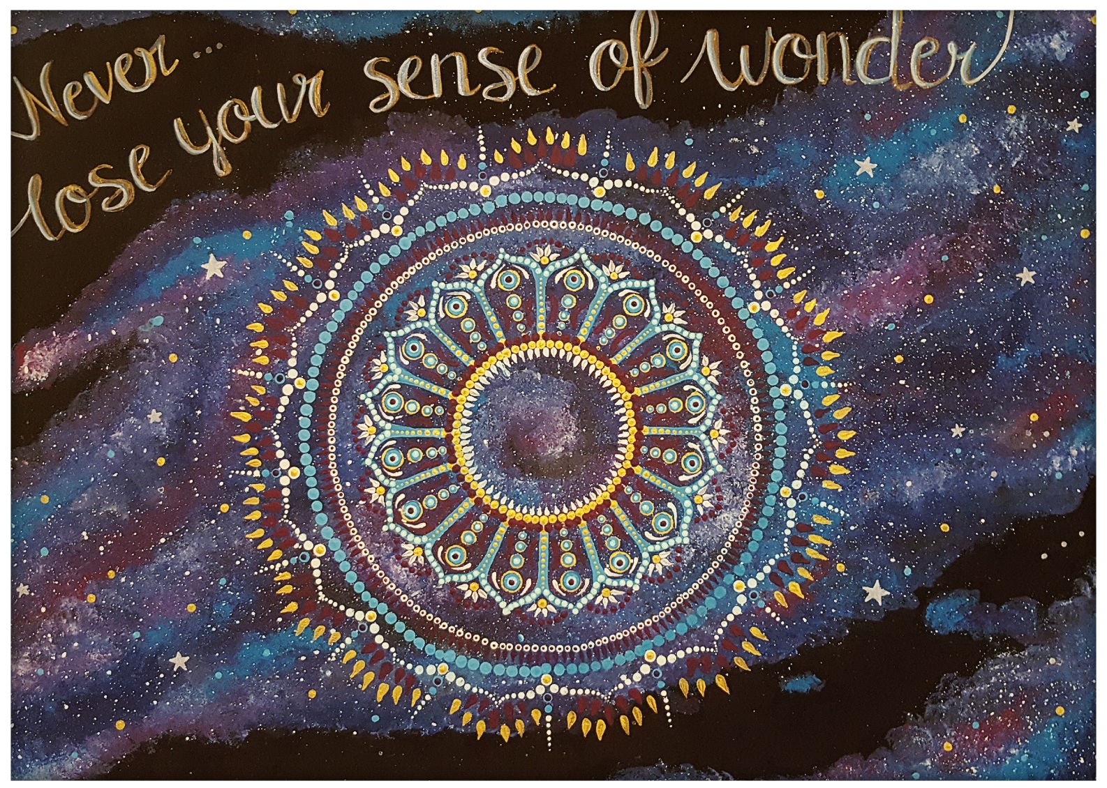 Motiv „Sinn für Wunder“ mit Heilmandala im Universum.
